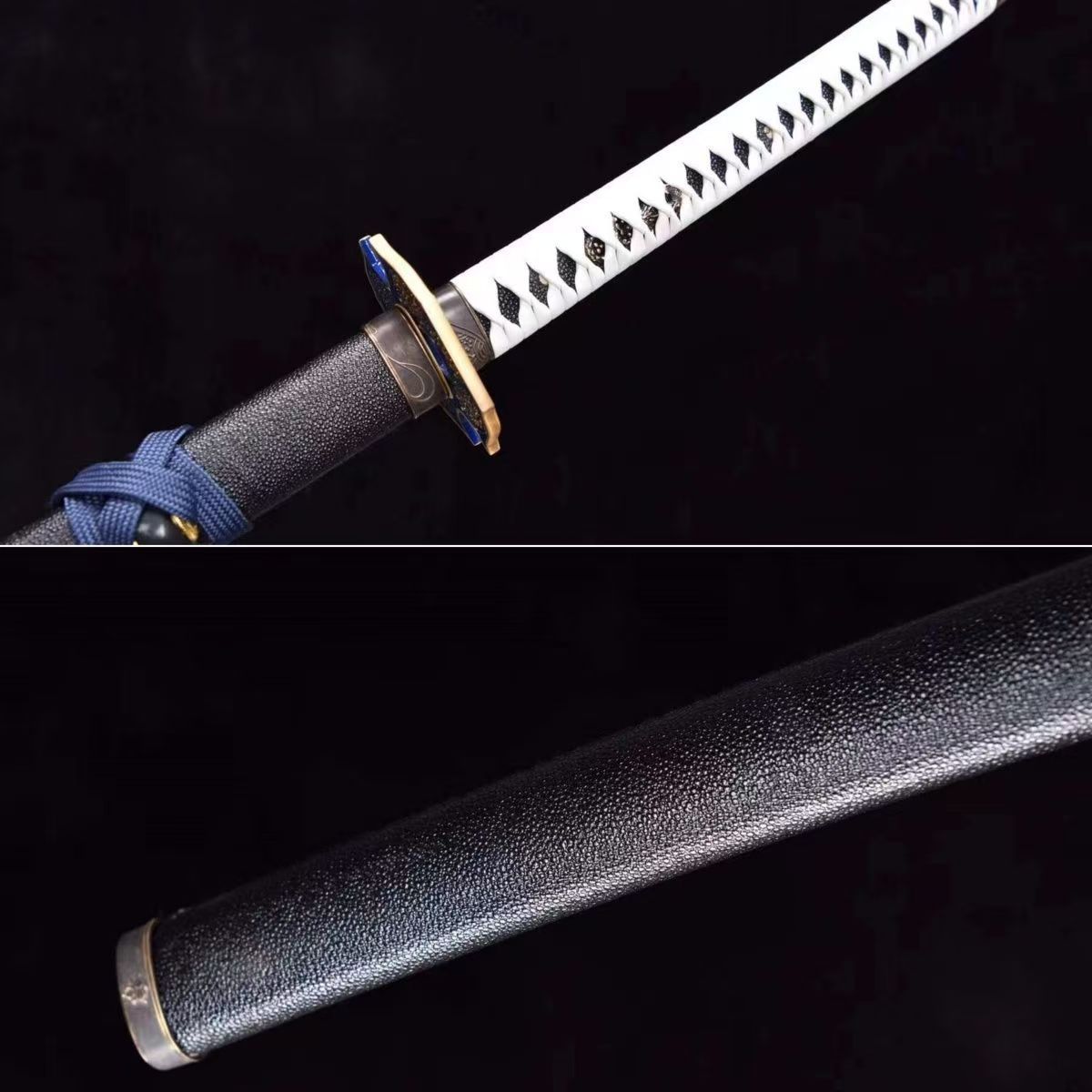 | 商品の特徴 | 究極の名刀脇差、正宗最高級.居合刀日本アンティークギャラリー製。究極の名刀脇差、正宗最高級.居合刀日本アンティークギャラリー製。究極の名刀脇差、正宗最高級.居合刀日本アンティークギャラリー製。特選居合刀、アンティーク社究極の名刀脇差、相州.正宗 の紹介です、今では正規販売されていない、日本アンティークコレクション社の正宗特選(黒合皮革)巻き写しです。大迫力 片目貫 赤銅地 長尾鳥図 刀装具 日本刀 時代物 骨董 古美術 江戸時代。詳しくは池田正宗.解説書にて記載しています。小物1 花弁型 鉄製 鍔(つば) 錆色。鑑賞は元より、居合でも、砂流し刀身で非常に振りやすく、さばきやすい一振です。模造刀 黒赤鞘 二本セット。形 式全長 約69cm刃渡 約47.5cm(ハバキ含む)元幅 約2.8cm先幅 約2.0cm反り 約1.0cm柄長 約17cm重量 約589g (鞘を払って)付属品* 高級拵え袋(ちりめん)1枚 * 刀剣油 1個* 拭い布 2枚* 正宗参考資料 7枚 以上4点が付きます* 海外の発送は致しません* 完璧を求められる方は 購入をお控え願います。日本軍 海軍 短剣 赤鮫革研出鞘 当時物 リペア品 模造刀。究極の名刀脇差、正宗最高級.居合刀日本アンティークギャラリー製。正宗は鎌倉末期より、名刀の代名詞と言われ刃紋の美しさは天下一品で、戦国武将の信長、秀吉、家康、他、がこぞって求めた一振です。正宗は直刃を焼く祭には銘を入れることも有ったが、湾れ刃の場合は他の刀工作と紛れることはないという自信から、ほとんど銘を刻まなかったとされています。小物1 波と風の模様の金属製鍔。小物1 鉄製 鍔(つば) 漢字刻印あり。日本アンティーク社は刀剣コレクションシリーズは完売となり、会社は停止しており、今では希少な品と成っています。この美術工芸品とも称される一振を是非この機会にお求め下さい。STRIKE・FENRIR。小物1 正阿弥?鉄製 鍔(つば) 円形穴あきデザイン。本.真剣拵えを存分に楽しんで下さい。仕 様刃紋 湾れ.(のたれ)二重刃文刀身 砂形特殊合金.樋入り 中切っ先、薄刃仕様柄 朴木製、本鮫皮柄巻 黒合皮革捻り巻下緒 金茶色綿糸縁頭 面頬 (銅製)目貫 軍配、采配 (銅製)鍔 竹梅金象嵌 (鉄製)ハバキ 祐乗 (黒塗製)鞘 刷毛漆糸巻き塗り (春慶塗り仕上げ)本品は未使用品ですが、永年保管の為、差し裏に鍔元と鞘に極少なキズが有ります、中古品とご理解の上ご購入をお願い致します。旧家解体時蔵出し 臑当 年代物。日本刀 模造刀 刀剣 太刀 ジュラルミン 舞踊 神楽。* 受け取り後の返品はご 遠慮お願い致します。 | ||