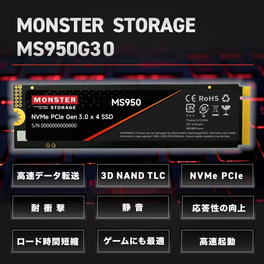 - PCパーツ > 内蔵型SSD > モンスターストレージ M.2 SSD 2TB MS950 NVMe DRAMレス Monster Storage(モンスターストレージ) 内蔵SSD 2TB NVMe PCIe